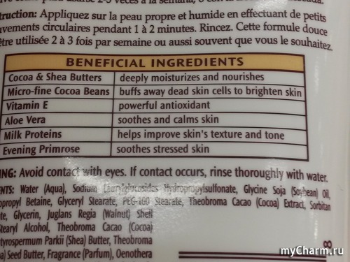 Частички какао бобов - эти микрогранулы очень нежно и деликатно очищают, шлифуют кожу, тонизируют и освежают.