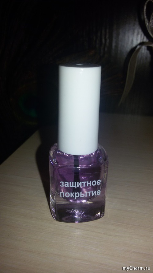 Без бумажной упаковки понять, какое средство перед вами очень сложно - на стеклянной баночке (6мл) с обычной белой крышечкой значится только лаконичное название "Защитное покрытие" без указания бренда и какой-либо прочей информации. На дне указан скорее всего номер оттенка лака №87, хотя в лечебной серии они почти все одинаково прозрачны.