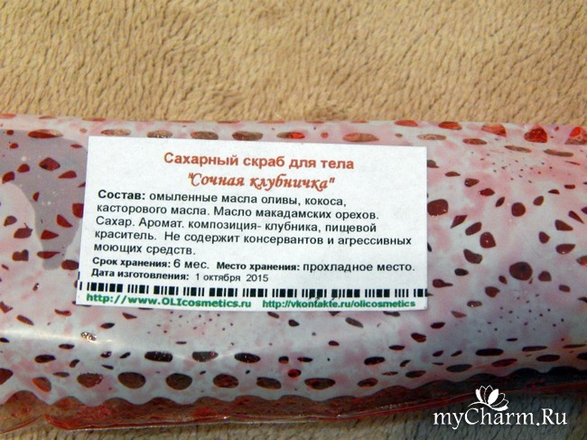 Одним из подарочков, входящих в набор выигранного мною приза от спонсора конкурса обзоров Olicosmetics, стал сахарный скраб для тела «Сочная клубничка».