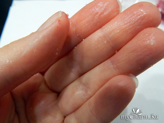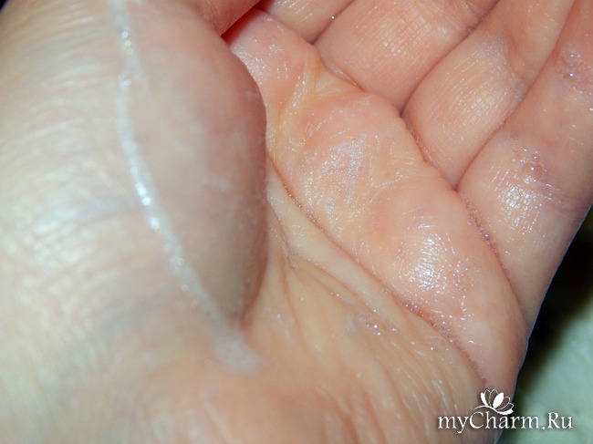 На коже образовалась легкая розовая ароматная пенка, которую я легко смыла теплой водой.