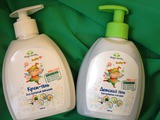 Оба геля радуют наличием экстрактов лаванды, липы, ромашки, череды и алоэ. Такая растительная компания знакома каждой мамочке, ведь для ванночек малышам часто рекомендуется делать настои именно из этих растений. Детский гель дополнительно сдобрен аллантоином и маслом сладкого миндаля. Оба средства дополнены Д-пантенолом.