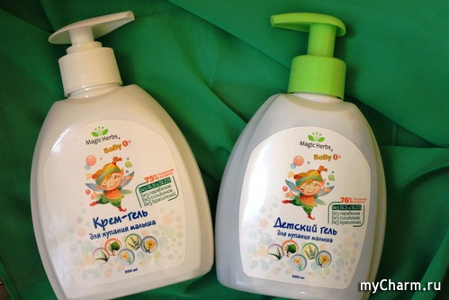 И сейчас на нашей полочке уютно расположились два милых и симпатичных варианта от Magic Herbs: Крем-гель и Детский гель для купания малышей. Оба средства подходят для деток от 0+. Не содержат SLS, парабенов, силиконов и красителей. Это ли не прекрасно для детской косметики? Можно спокойно намыливать любимое чадо и не волноваться за негативные последствия.