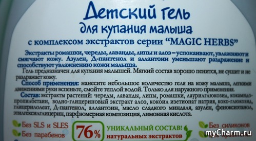 С нескрываемым удовольствием рекомендую присмотреться к этим двум замечательным средствам от Magic Herbs. Эти гели разработаны с учетом всех потребностей детской кожи и щедро дополнены силой и энергией трав. При этом, стоимость вполне доступна для каждой семьи. За флакон цена составляет порядка 120 руб. – 170 руб. (можно сравнить в разных магазинах).