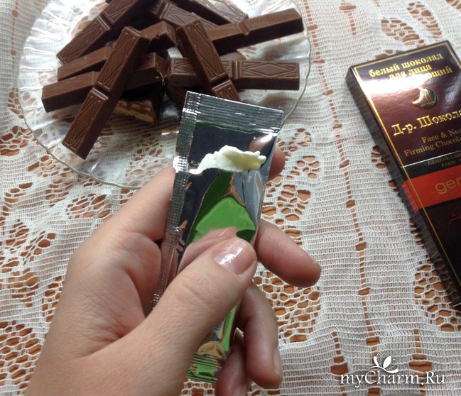 Получила я на тестирование шикарную маску из белого шоколада от ДНС!