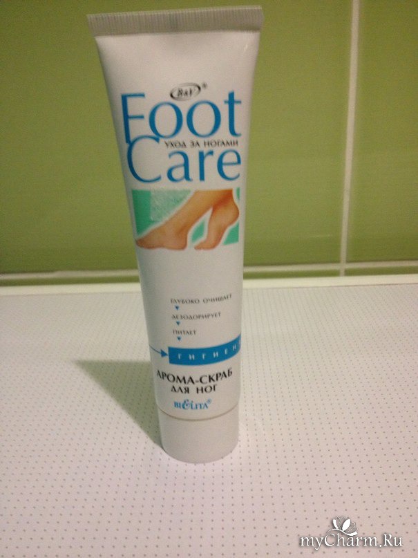В холодное время года я практически никогда не хочу на педикюр, если честно, то просто жалею денег. Ведь пяточки все равно не видны ни в туфлях, ни в сапогах, а салонные процедуры стоят ох как недешево. Тем не менее, чтобы уж совсем не запускать стопки, я часто использую различные скрабы для ног. Они отлично отшелушивают омертвевшие частички кожи, придают гладкость и мягкость пяточкам. Сегодня я расскажу, пусть и не о самой удачной своей находке для ног в магазине белорусской косметики, но, тем не менее, достаточно неплохой. Итак, речь пойдет об арома-скрабе для ног от Белиты из серии Foot Care.