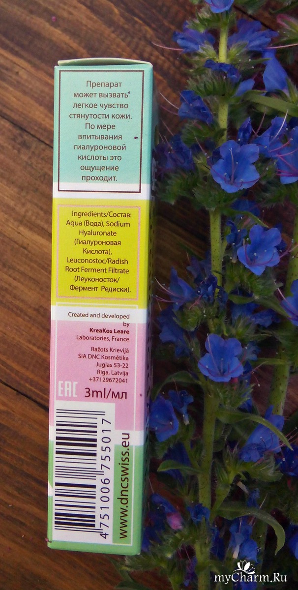 DNC. Гиалуроновая кислота. Салонная процедура. Именно такие надписи мы видим на лицевой стороне упаковки. Хотя в салоне в основном делают инъекционные процедуры, и результат от инъекций, конечно, гораздо заметнее, чем от простого нанесения на кожу, но такой вид менее травмоопасный.