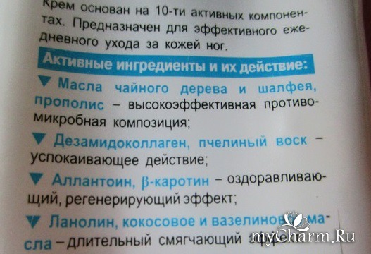 Ежедневно ухаживая за ногами с этим кремом, я действительно заметила некоторые результаты: кожа ног смягчилась, увлажнилась, стала более напитанной, что для меня, как обладателя достаточно сухой кожи, важно. Сильного дезодорирующего и защитного эффекта, честно сказать, я не заметила. Все-таки, мне кажется, больший упор в креме идет на смягчение. Собственно, по этой причине моя мама и не оценила "Смягчающий крем для ног", она хотела больше дезодорирующего действия.