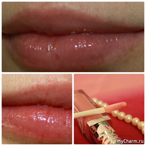 Что касается стойкости блеска, то «феноменальной», как указывает производитель в своей брошюре, я бы ее точно не назвала, но то, что она на достаточно высоком уровне – это факт. На моих губах цвет держится как минимум три часа, а то и больше, причем, как мне показалось, перламутровый тон более стойкий, чем матовый. Но и через час, и через два губы остаются такими же соблазнительными, как и сразу после нанесения блеска на них.