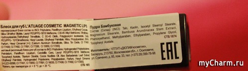 Так как у блеска нет картонной упаковки, то вся информация указана непосредственно на этикетке, приклеенной к флакону. Кстати, изначально она находилась на колпачке, чуть захватывая непосредственно сам флакон, как гарантия того, что до тебя блеск никто не открывал, а потом для удобства пользования, я ее переклеила чуть ниже.
