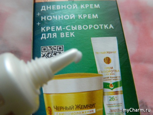 Крем-сыворотка для век «Сохранение молодости» по текстуре лёгкий, почти воздушный, обладает ненавязчивым ароматом. На коже не ощущается – настолько он невесомый.