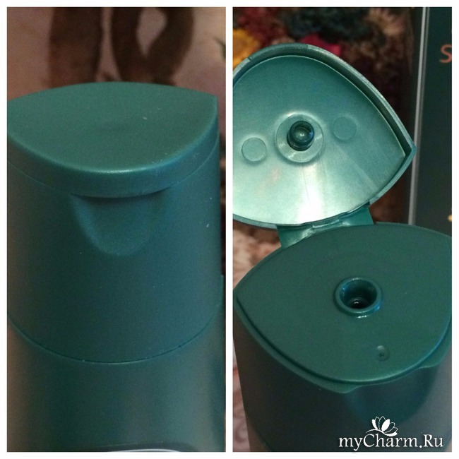 Красивая упаковка косметического средства, с отличительным "окошком" (как и у многих средств этого бренда). Цвет картонной упаковки "живой", природный - зеленый. На обратной стороне имеется вся информация на русском языке. Внутри находится удобный флакончик такого же цвета, как и картонная тара. Флакон имеет объем в 250 мл ценного шампуня. На самом флакончике есть информация, только уже на иностранном языке. Имеется удобная откидная крышка с выемкой под палец и небольшой удобный дозатор.