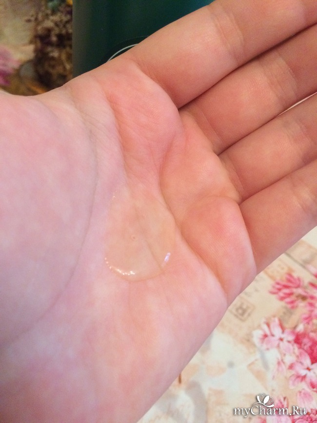 Аромат шампуня для окрашенных волос имеет очень приятный аромат. Как по мне, чувствуется выраженные нотки цитруса. Консистенция шампуня в меру густая, но не сильно, медленно стекает по руке. Цвет средства совершенно прозрачный.