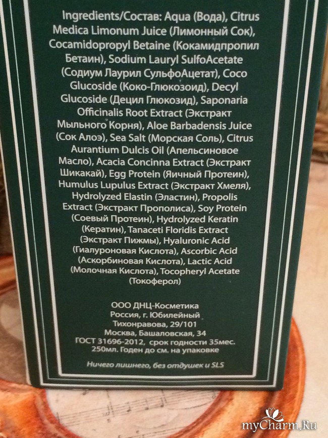 Не зря я чувствовала яркий цитрусовый аромат, ведь на первом месте после воды, стоит Лимонный сок! Он помогает коже головы регулировать выделение кожного сала. А это свойство будет полезным для тех, кто имеет жирные волосы или сами корни, которые быстро загрязняются.