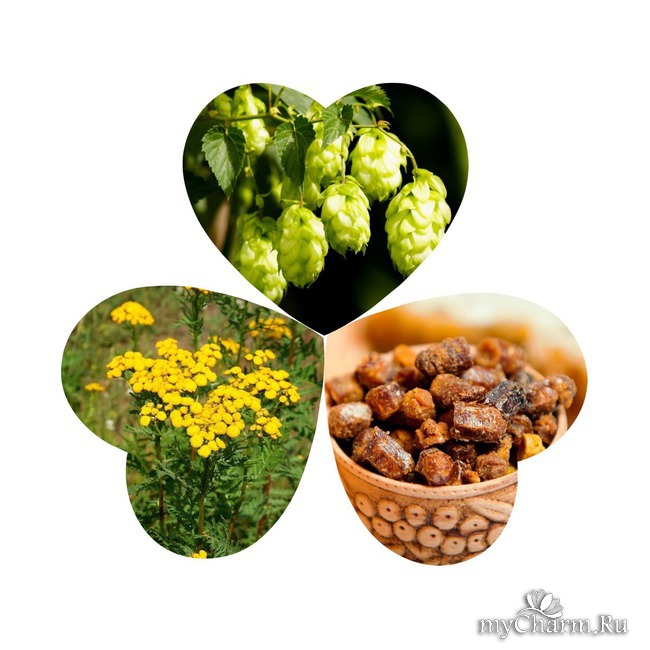 Экстракт хмеля, пижмы и прополиса восстанавливают структуру волос, проникают глубоко в корни, избавляя от выпадения.