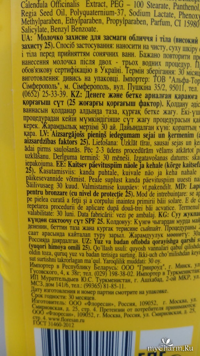 "молочко для загара от Floresan" - хорошая штука, у меня был такой и я тоже не обгорела и в обзоре об этом подробно написано