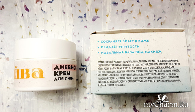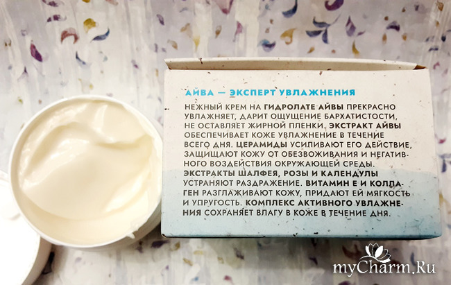 Крем нежно-желтоватого оттенка, с чудесным лёгким ароматом айвы. Текстура кремовая, чуть маслянистая, но на коже впитывается быстро, не оставляя следов липкости или жирности, не стягивает кожу. Именно благодаря такой текстуре крем как будто тает на коже и расходуется очень экономно. При умывании нет ощущения окклюзии. Крем отлично держит влагу в течение дня, не даёт коже сохнуть, а значит выполняет свое назначение на все 100%.