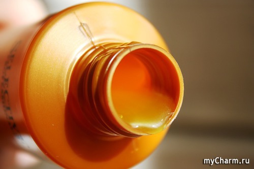 Удобный изогнутый флакон в бронзовом цвете имеет удобный колпачок с дозатором. Он плотно закрывается и исключает возможность протекания. Шампунь золотистого цвета, искрится и переливается в лучах света. Аромат сладкой ванили усиливает общее впечатление – это яркий уходовый продукт для лета! Средство создает умеренную ароматную пенку, замечательно очищает кожу и промывает волосы. Сразу после душа ощущается свежесть и комфорт, и можно наносить лосьон или крем после загара на тело. Волосы приобретают живость и блеск, заметно уплотняются, но им еще на помощь придет маска.