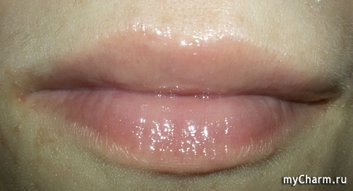 Его даже можно назвать прозрачным с легким намеком на бежево-персиковый цвет. А я-то ждала более насыщенный оттенок. Но губы просто покрылись натуральным оттенком и заблестели. В следующий раз перед покупкой я не стану терять бдительность и обязательно протестирую блеск.