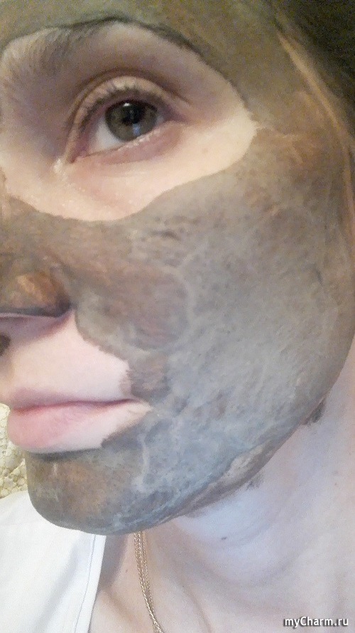 Она немного подсохла, но кожу не стягивает. Смывать её не просто оказалось, мне помог спонж.