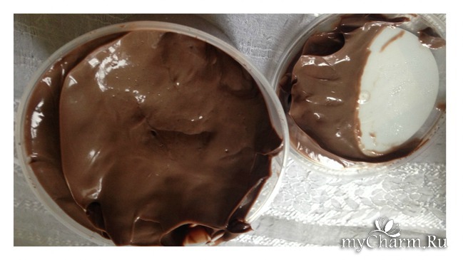 Цвет самый что ни на есть шоколадный. Запах больше напоминает кондитерскую плитку, чем настоящий шоколад. Но, тем не менее, очень вкусно пахнет.