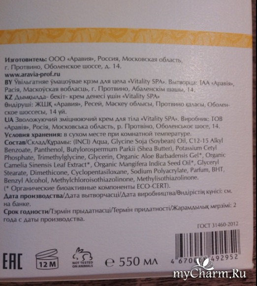 Предварительно банка с кремом упакована в картонную коробку, на которой есть вся необходимая нам информация. На банке информация частично дублируется с картонной упаковки.