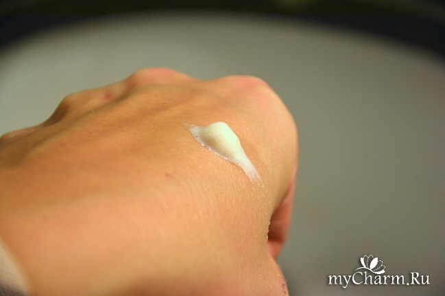 Она густой консистенции, однородная, бело-перламутровая.