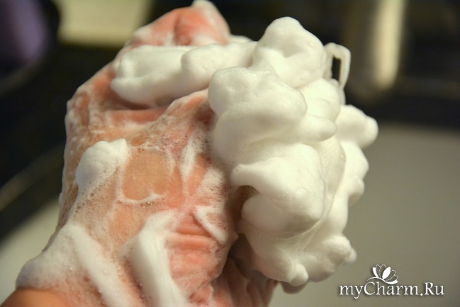 Мылится средне. И средне же взбивается сеточкой - ее "сестра" Benefiance в этом плане получше будет. Но тем не менее сбивается, получается густая, крепкая пена, которую можно наносить на лицо, если вы умываетесь по азиатской системе -
