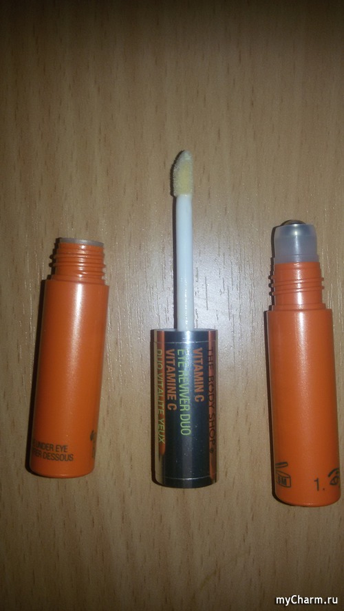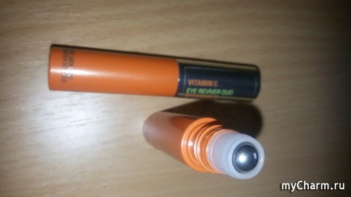 Но, прежде всего, я порадовалась яркой, оранжевой упаковке, которая откручивается с двух концов, открывая взору целых два средства: нежный крем и маленький роликовый аппликатор. Продолговатая форма мини-тюбика очень удобна для того, чтобы носить его с собой. И в косметичке, благодаря сочно-оранжевому цвету, он точно не затеряется. Но есть и минус – в непрозрачной упаковке сложно контролировать расход средства.