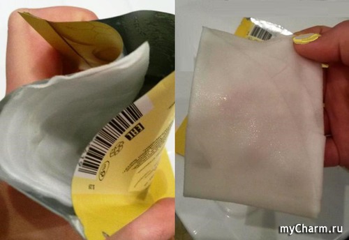 Если все мои доводы показались вам интересными, и где в глубине подсознания уже зашевелилось желание попробовать такой уходовый продукт, то запоминать упаковку даже не стоит. Она настолько яркая и заметная, что сама отпечатается в вашей памяти. Смотрите сами, ярко-желтый пакетик-саше с изображением шариков-пузырьков, имитирующих молекулы ценного компонента. Я когда впервые выцепила этот приятный солнечный цвет из всего ассортимента, то подумала, что это лимонная маска. Ан, нет.