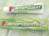 У меня российская версия. Интересно было бы сравнить тот Фтородент, который был несколько лет назад, ещё в 1980-е годы, и сегодняшнюю пасту. Но этого, к сожалению, сделать сложно. Зато можно хотя бы визуально сравнить российский и белорусский Фтородент.