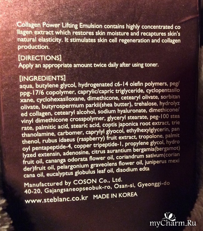 В завершение - обещаю сделать очередной обзор следующего продукта из линейки STEBLANC (крем гель лифтинг для лица с коллагеном (75%), который я наношу ВМЕСТО или ПОСЛЕ применения Collagen Firming Emulsion.