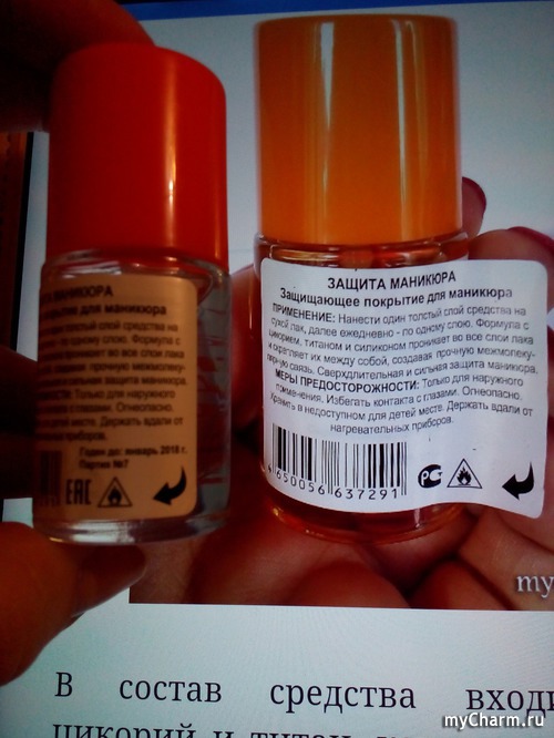 На обратной стороне флакона написано, как применять это средство: нужно нанести один толстый слой средства на сухой лак, далее каждый последующий день - по новому слою.