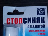 Внешний вид, обещания производителя. Средство «Стоп-синяк» находится в небольшом «карандаше», плотно закрытом пластиковой крышечкой. «Карандашная» форма продукта, я считаю, очень удобна, особенно при различных переездах и долгих путешествиях. Стик вполне небольшой, так что он легко поместится в любой дамской сумочке. При первом применении приходится достать его из плотно закрытой картонной упаковки, на которой сзади приведена полнейшая информация о составе продукта, способе его применения, а также приведен срок годности и информация о производителе. На передней части прикрепляется сам «карандаш», а также располагается название средства, и приводится результат его применения.