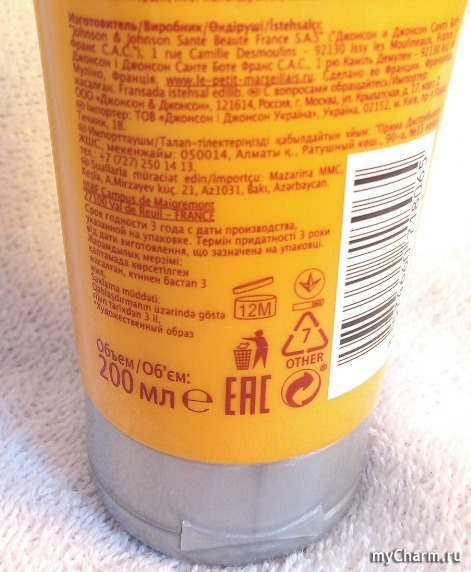 Объем средства 200 мл. После вскрытия в течение года надо использовать до конца. Мой экземпляр кондиционера сделан во Франции, что меня очень порадовало.
