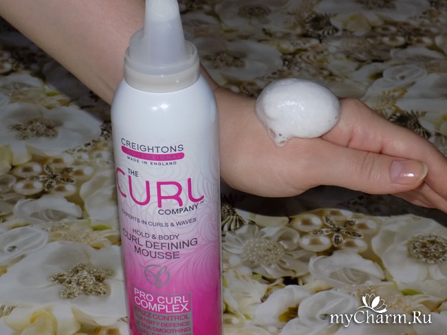 Стоимость такого мусса 955 рублей. Напоминаю, довольно высокая цена данных средство обусловлена тем, что это профессиональная косметика известного европейского бренда. Объем флакона – 200 мл. При выдавливании мусса из его конуса в ладони у вас оказывается нежная белоснежная пенка. Много ее не нужно на самом деле, чтобы не утяжелять волосы. Тем более, если перед этим вы нанесли пару-тройку капель несмываемого кондиционера CURL EXPERTS IN CURLS & WAVES от CREIGHTONS PROFESSIONAL.