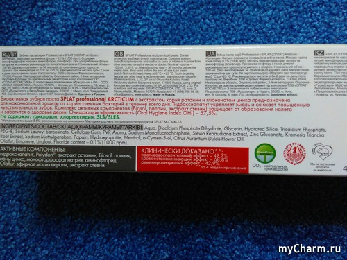 Как и все другие полученные на тестирование пасты, «Арктикум» тоже имеет зеленую метку, гласящую о безопасности продукта. Не знаю, как вас, лично меня это очень радует.