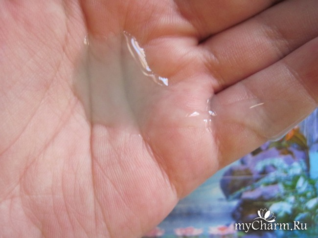 Гель имеет морской цвет. Он полупрозрачный. Консистенция средняя – не слишком густая и не слишком жидкая. Оптимальная, на мой взгляд.