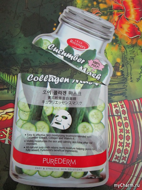 Сегодняшний обзор хочется посвятить на данный момент лучшей из всех, что мне довелось попробовать за свою жизнь, освежающей маске на тканевой основе для лица — Cucumber Collagen Mask (Освежающая коллагеновая маска с экстрактом огурца) от корейского бренда Purederm.