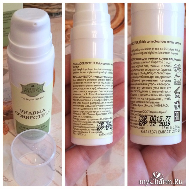 Я думаю, что многие из нас не высыпаются по каким-либо причинам. И как следствие этого, мы имеем неудовлетворительный вид в такой нежной зоне, как вокруг глаз. У кого-то появляется отечность (мешки), у других темные круги и другие неприятности из-за недосыпания. Я не всегда высыпаюсь, поэтому проблема припухлости вокруг глаз имеет место быть. А вот муж из-за этой проблемы имеет темные круги под глазами. На помощь нам пришел "Фармакорректор". Это флюид от темных кругов под глазами от замечательного бренда (я успела его полюбить) GREEN PHARMA.