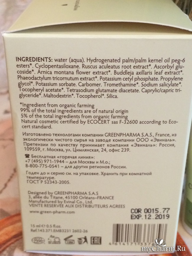 Вся косметика GREEN PHARMA не тестируется на животных и имеет сертификат ECOCERT.