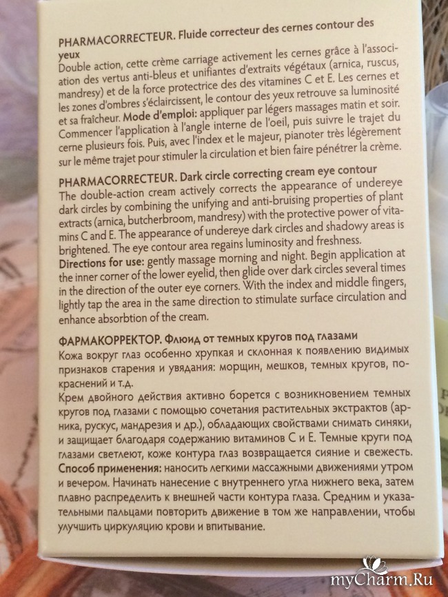 Мне средство очень понравилось. Кто имеет темные круги под глазами и "мешки" советую приобрести по адекватной цене Фармакорректор.