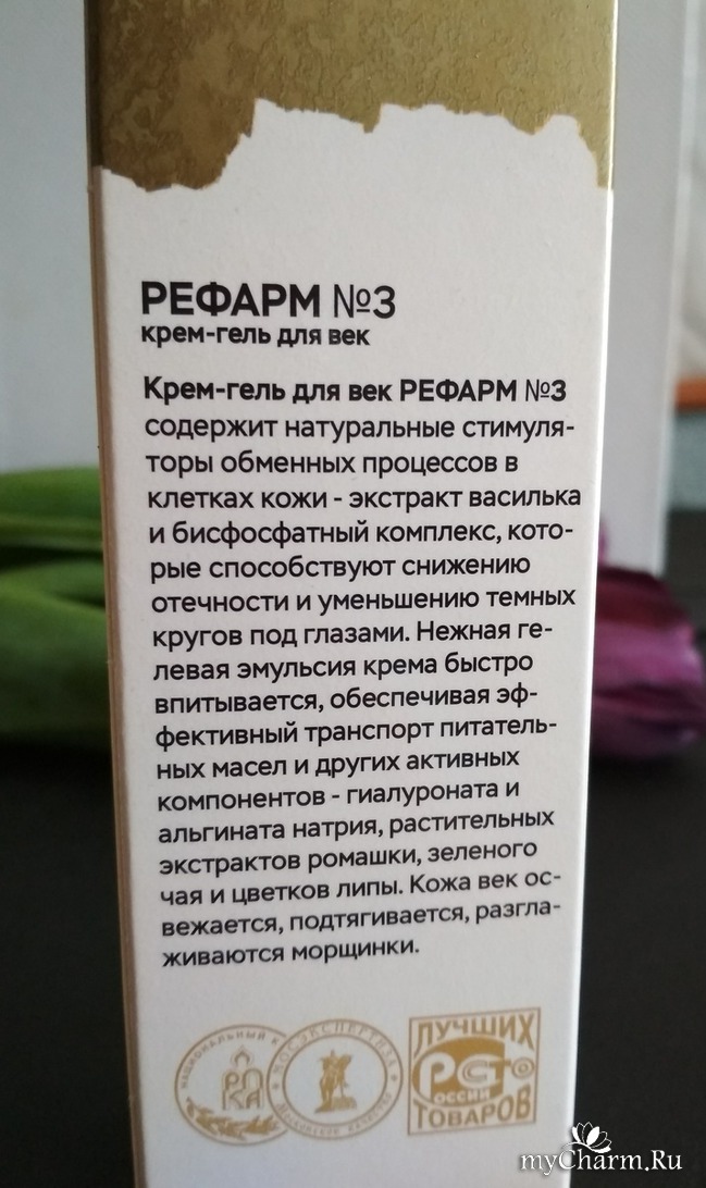 Наслушавшись комплиментов, рекомендую Крем-гель № 3 от Рефарм для ежедневного ухода за кожей вокруг глаз тем, кого начали беспокоить признаки увядания и старения. Крем показал свою эффективность в части увлажнения, разглаживания мелких морщин и снижения отечности. Ставлю твердую "пятерку"!