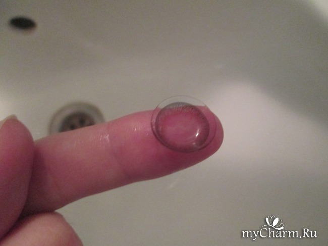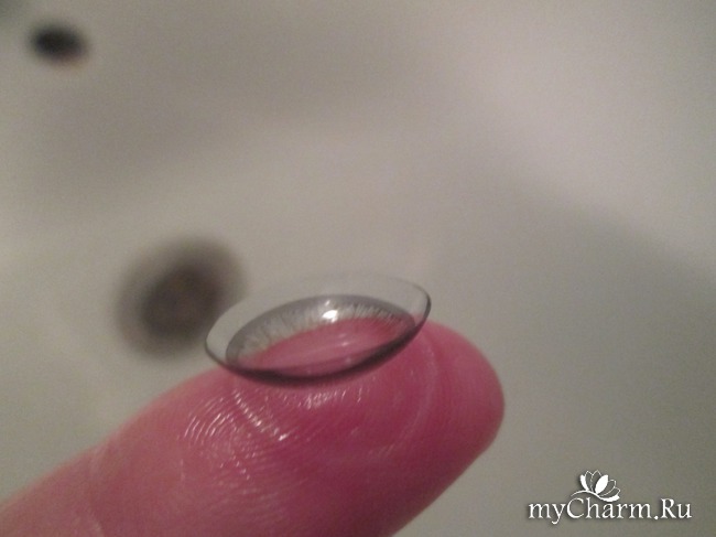 Линзы очень мягкие, гибкие. Мягкие настолько, что этот момент я записала им в минус. Мне пришлось некоторое время прилаживать их на пальце, чтобы надеть – слишком мягкая и тонкая линза упорно загибалась. То есть новичку будет этот момент сложноват. Меня же он заставил слегка поморщиться. Кстати, линзы эти имеют, кроме некоторого косметического эффекта, о котором и пойдет речь ниже – возможность подобрать нужную кривизну линзы и ее диоптрии.