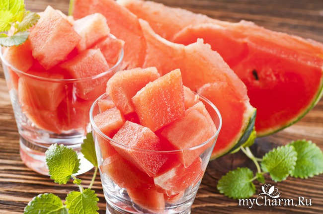 Арбуз содержит массу полезнейших веществ – пектин, растительные белки, витамины редких групп – В1, В2, РР, кислоты – фолиевую и аскорбиновую, аминокислоты, минералы - кальций, железо, магний, фосфор. Еще замечательное есть свойство у арбуза – его мякоть подходит для ухода за любыми типами кожи.