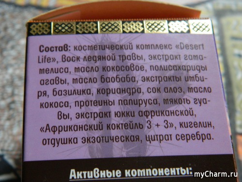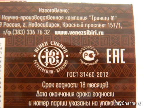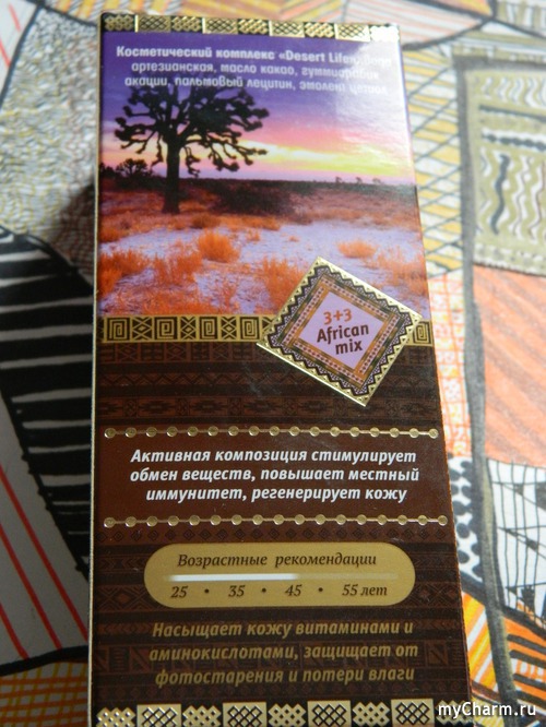 Дизайн упаковки выполнен в лучших африканских традициях (орнамент, фотографии), так что если бы не надписи на русском, вполне можно было бы подумать, что средство заграничное, привезённое из какой-либо экзотической страны. Но нет, производят его у нас, в Новосибирске.