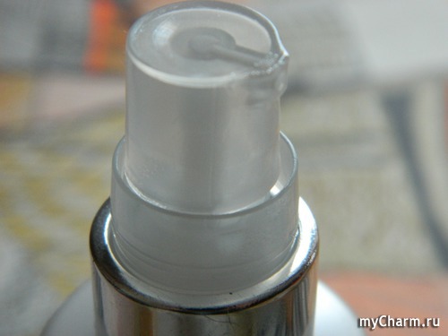 После роскоши картонной коробочки флакон с сывороткой (100 миллилитров) выглядит скромненько. Он оснащён помпой и дозатором.