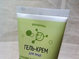 Дизайн выполнен в едином стиле косметической продукции Микролиз. Крем-гель находится в тубе с широкой отвинчивающейся крышкой. Горлышко было запаяно фольгой.