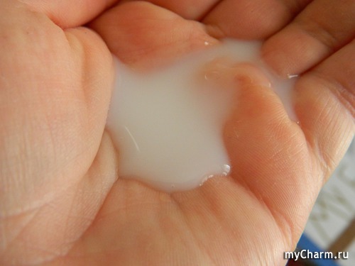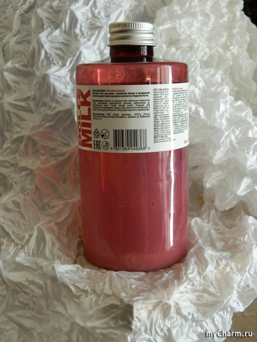 Что интересно: во время водной процедуры, при соприкосновении с кожей, запах спелой вишни слегка меняется: теперь это реально «молочная» вишня (не зря средству дано название «Молоко и вишня»!): аромат здорово напоминает свежий вишнёвый йогурт, и приходится прилагать массу усилий, чтобы не попробовать его на вкус.