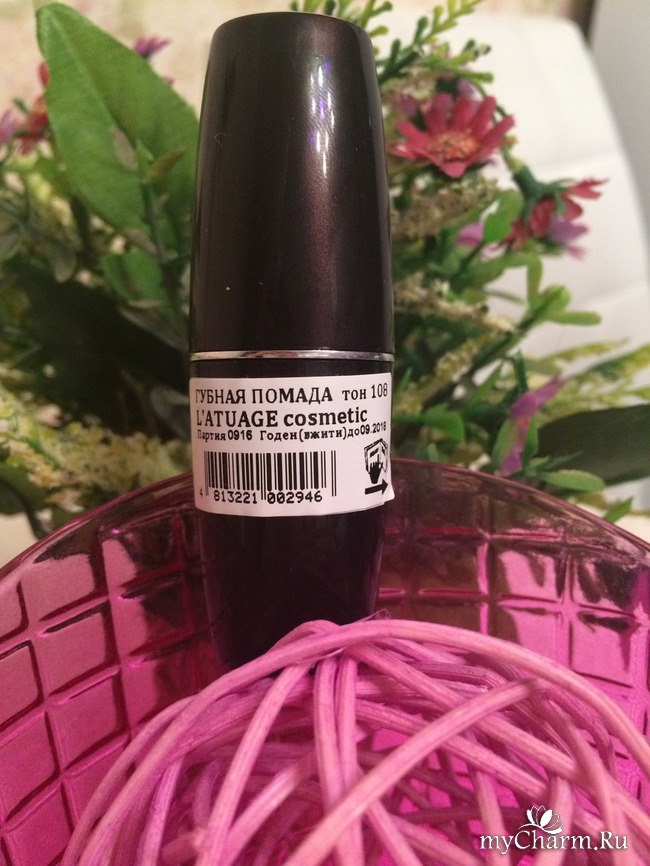 Что можно сказать о матовой помаде? Многие считают ее универсальной, так как смотрится она на губах выигрышно в любой ситуации, будь то будний рабочий день или вечернее торжество. Стоит также отметить огромное преимущество таких помад. Мало того что их можно сочетать с любым стилем одежды, так еще и "покрытие" намного устойчивее, чем у жидких помад и блесков. Матовый оттенок всегда смотрится благородно и дорого. Поэтому, милые дамы, я хочу рассказать про одну из большинства данной косметики. Это Губная помада от L'ATUAGE cosmetic, матовый тон 108.