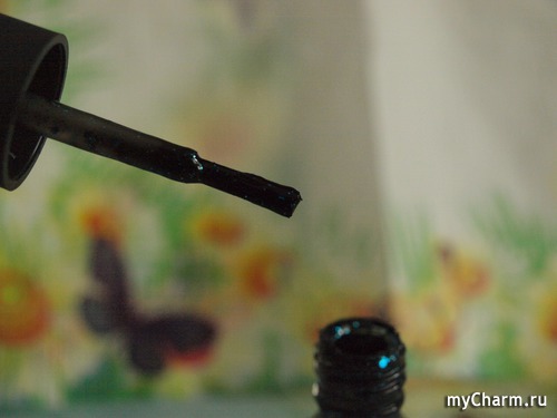 В качестве основы не обязательно использовать черный лак, достаточно будет любого темного. Я обычно наношу темно-фиолетовый или темно-синий.